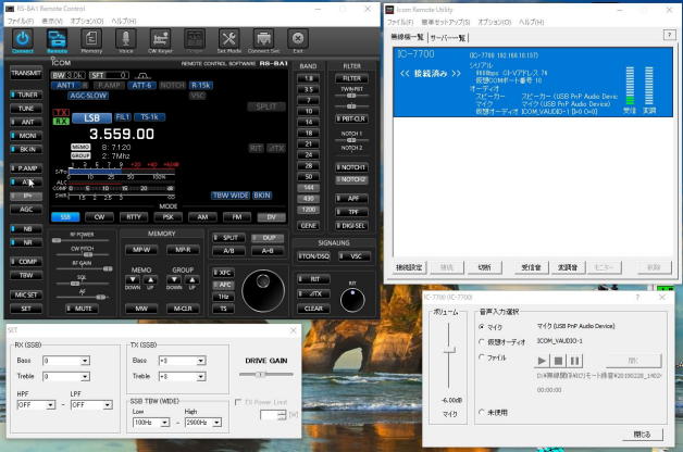アイコム社のRS-BA1ソフトを使用して遠隔通信運用