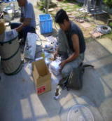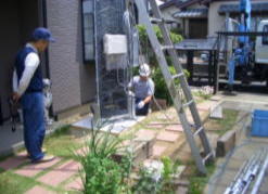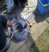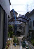 3.クレーンにて資材搬入 4.ルーフアンテナ撤去