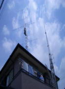 5.タワー基礎台に取り付け 6.1段目5SDX(5エレ)取付け
