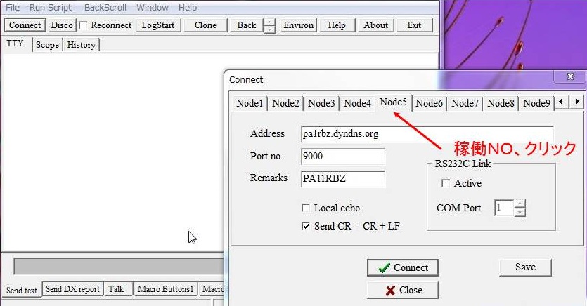 ■画面下の空白に自局のコールサインを入れてEnterキーを押す。